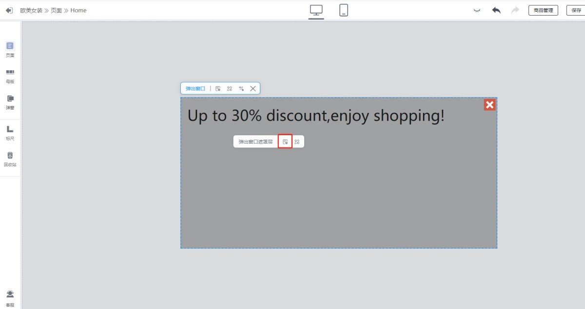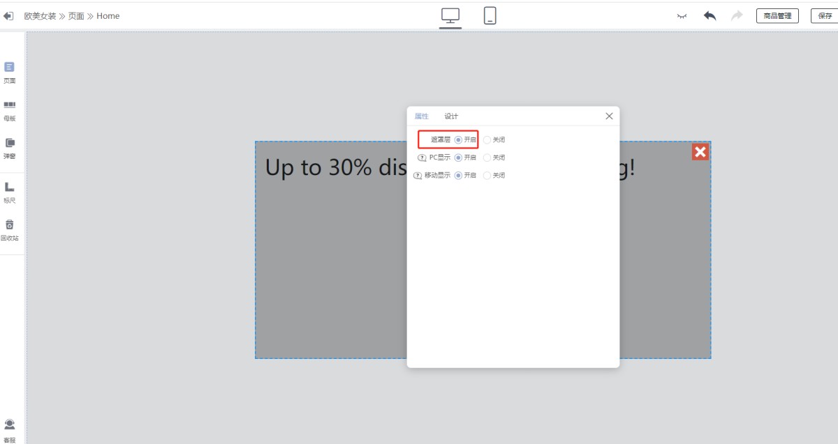 设置了弹窗以后,点击预览为什么屏幕被遮住?