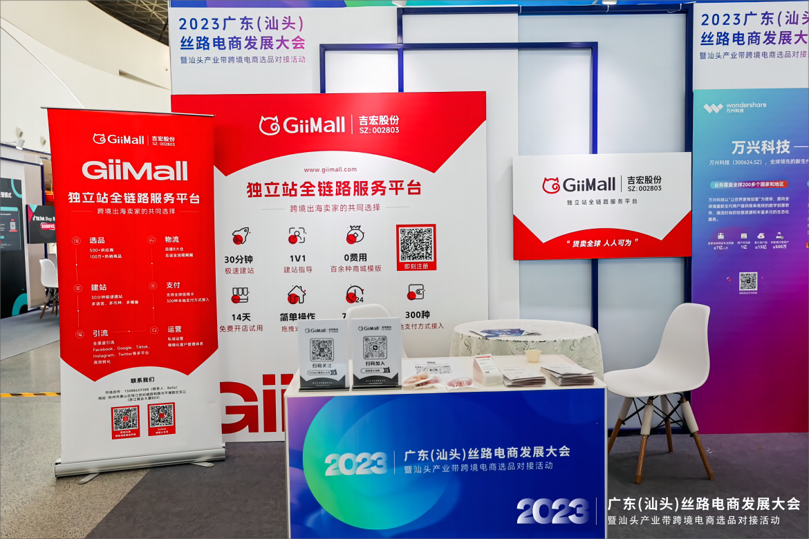 对此,GiiMall积极参加12月22-23日在潮汕历史文化博览中心举办的2023 广东(汕头)丝路电商发展大会暨汕头产业带跨境电商选品对接活动,为跨境电商企业带来独立站全链路服务,帮助企业实现一站式出海。