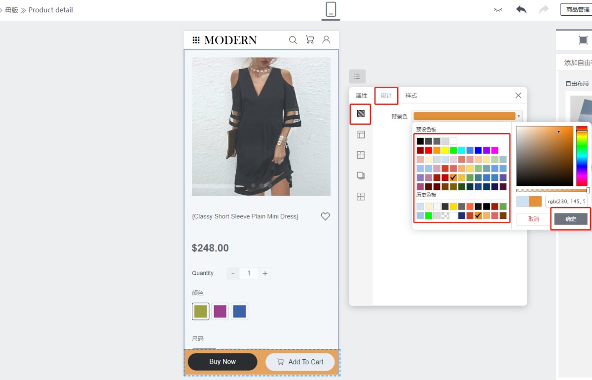 2.2 点击“设计”修改底部导航和按钮的样式,背景和颜色等