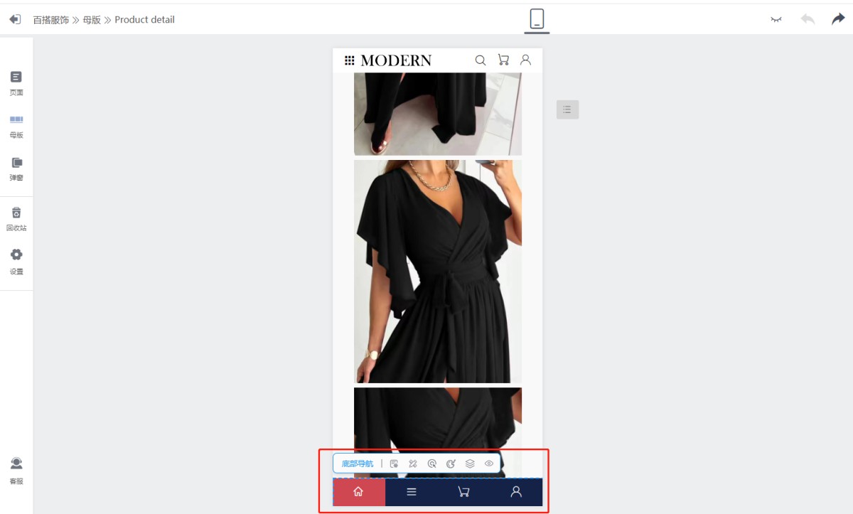 如何修改纯移动端商品详情页的底部导航?