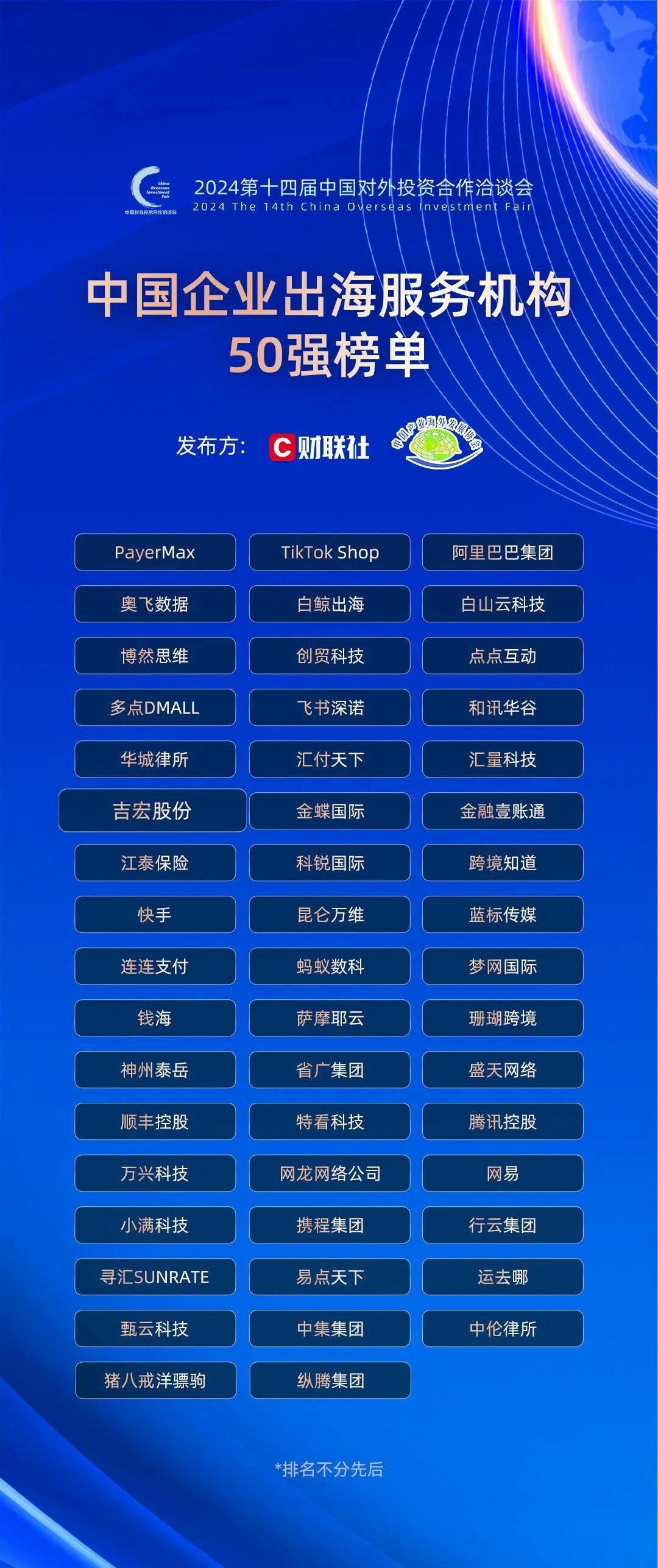 吉宏股份受邀出席了本次活动,期间获得了由财联社与中国产业海外发展协会联合评选的“中国企业出海服务机构50强”权威认证。