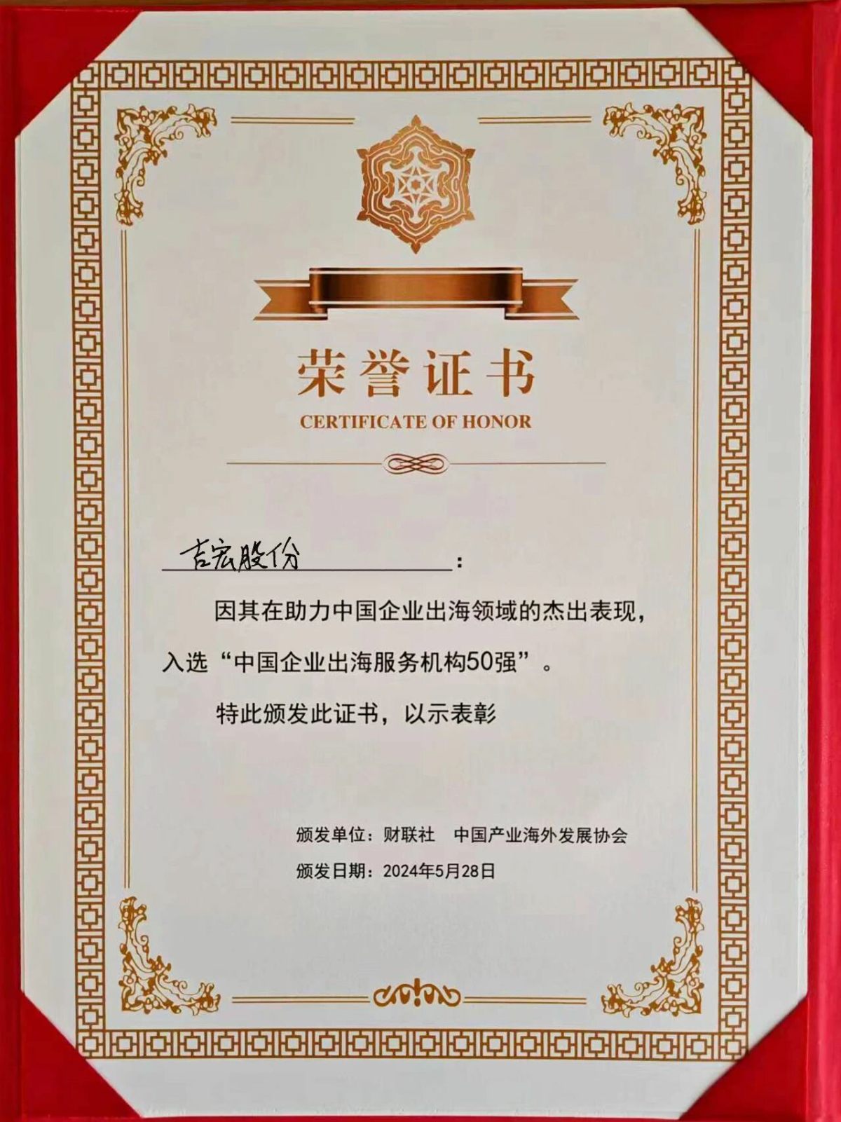 吉宏股份获颁“中国企业出海服务机构50强”!