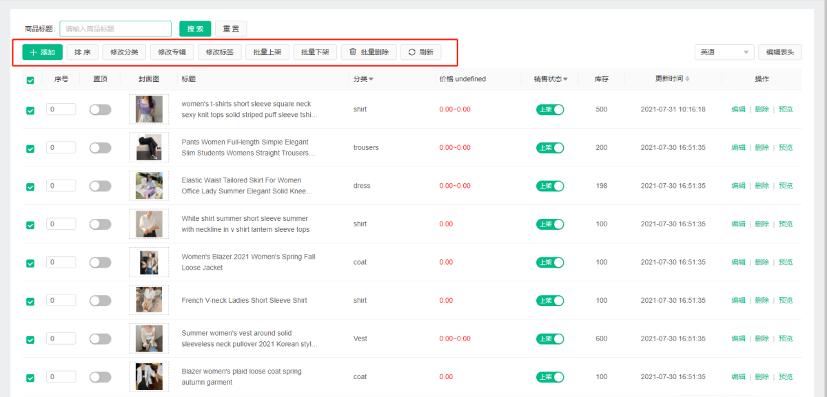(1) "Commodity List Batch Operation": After checking the commodities you want to edit in batches, you can batch modify commodity categories/albums/tags, list/delete/delete commodities, modify commodity order, and quickly manage commodities;