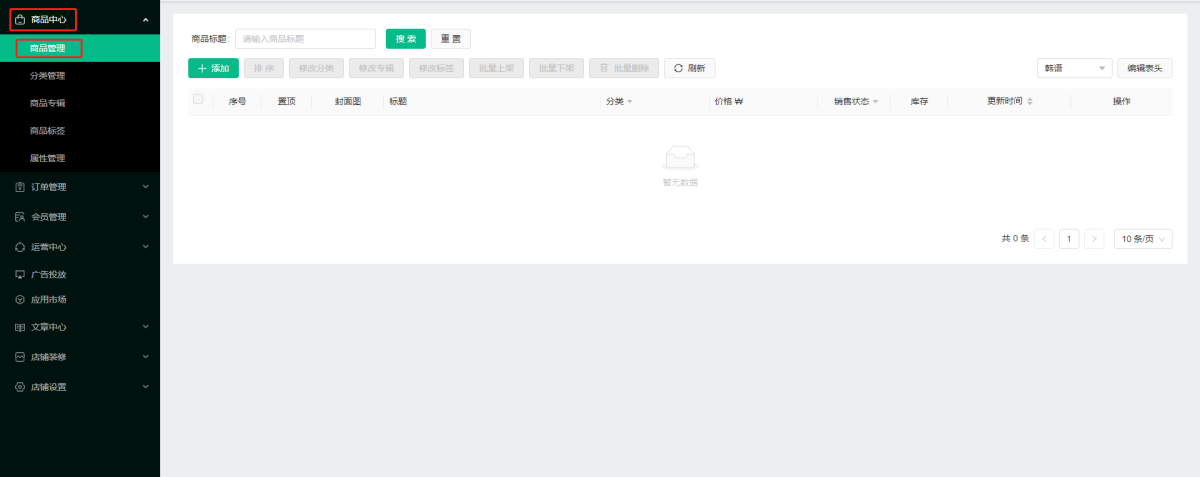 (1) Select the "Commodity Management" module in the "Commodity Center" in the background to enter;