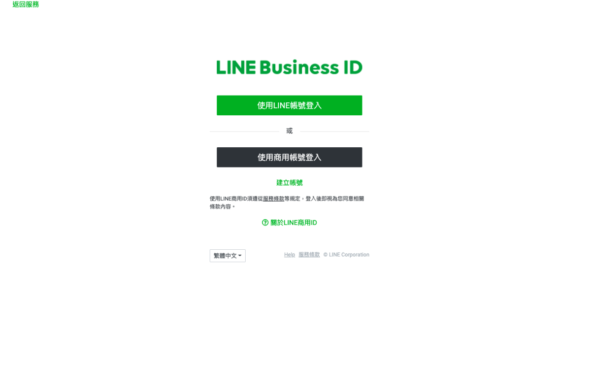 如果没有Line官方账号,则选择建立账号,创建官方账号。