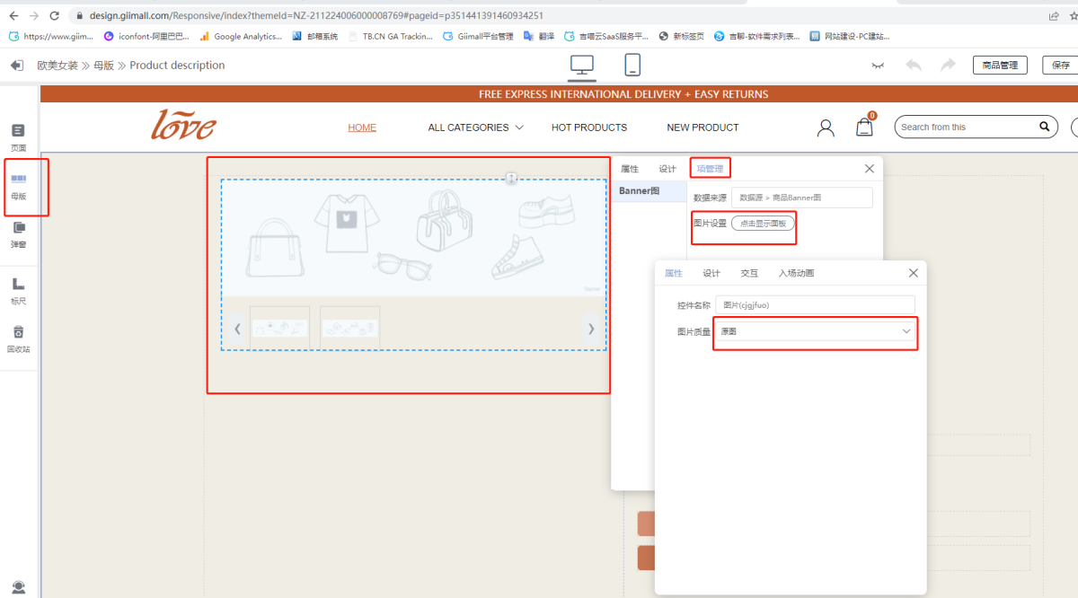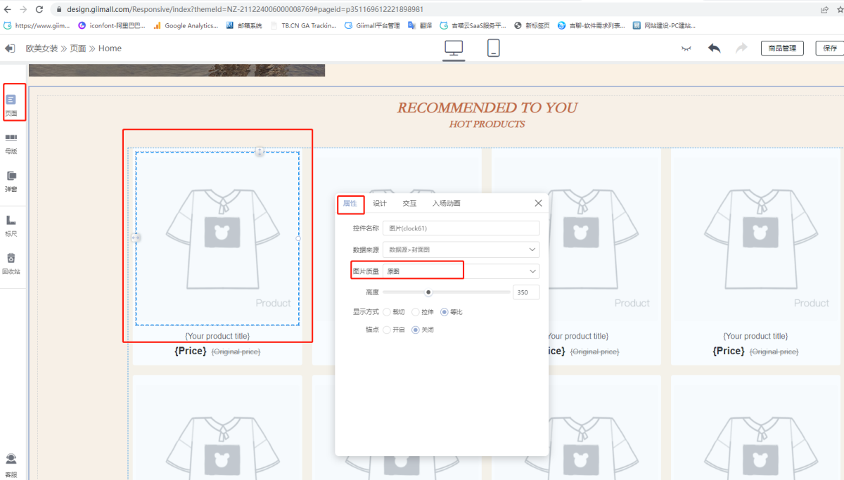 A2: On the normal page (Home), click the first picture in the product list (only the first product in the product list on the normal page can be edited, and the edited content will be applied to other product details in the product list), click [Properties] , select [Image Quality] as shown below. (The best picture size is 800*800 and above)